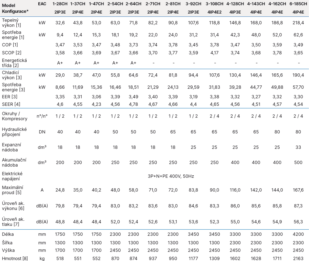Údaje deklarované podle EN 14511:2018. Všechna data se vztahují na standardní jednotky bez příslušenství pracující za jmenovitých podmínek.