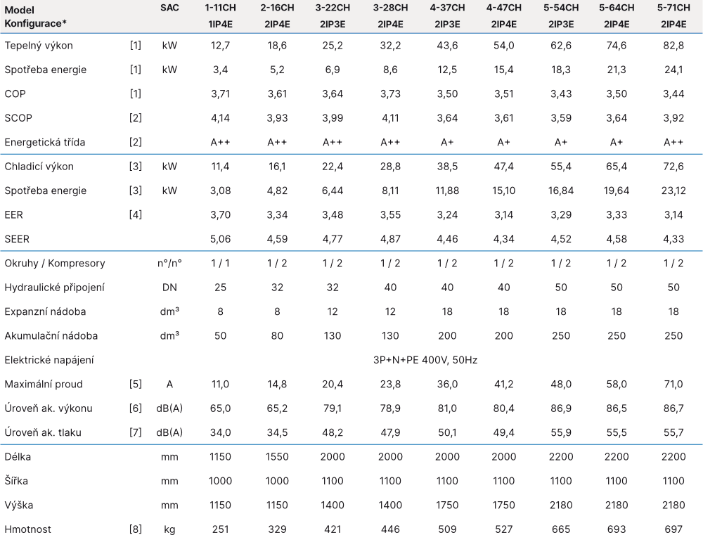 Údaje deklarované podle EN 14511:2018. Všechna data se vztahují na standardní jednotky bez příslušenství pracující za jmenovitých podmínek.